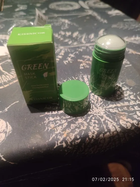 1️⃣ Drehen & Auftragen – Trage den Grünen Tee Maskenstick gleichmäßig auf das gereinigte Gesicht auf. 🌀💚